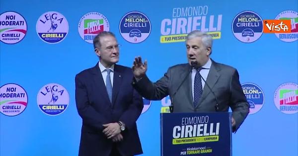 Tajani ricorda Berlusconi a comizio Napoli, la platea grida: "Silvio, Silvio"