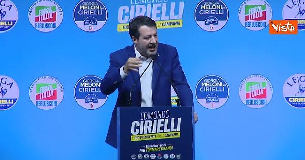 (Agenzia Vista) Napoli, 15 novembre 2025 "Se arrivi a Napoli e dopo un po' inizi a dire però non mi piace come vivete qua, non mi piace come si vestono le vostre donne e non mi piace San Gennaro, e basta col calcio e non mi piace il presepe e non mi piace Gesù Bambino e non mi piacciono le vostre chiese, se arrivi qua e non rispetti le nostre leggi, la nostra cultura e le nostre tradizioni fuori dalle palle, fuori dalle palle dal primo all'ultimo torna a casa tua amico mio, torna a casa tua non ci mancherai", così Matteo Salvini al comizio del centrodestra a Napoli a sostegno di Edmondo Cirielli. FdI Fonte: Agenzia Vista / Alexander Jakhnagiev