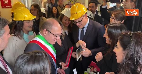 Verdone "sindaco" visita scuola danneggiata da esplosione Via Gordiani con caschetto in testa