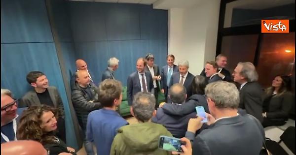 Applausi per Roberto Fico dopo la vittoria alle elezioni regionali in Campania, al fianco dei leader del centrosinistra Conte, Schlein, Fratoianni e Bonelli.