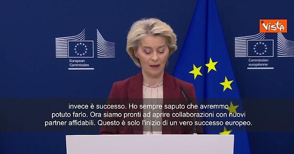 È un successo certo, ma non da subito. È l'alba di una nuova era, l'era della piena indipendenza energetica dell'Europa dalla Russia”. Lo ha detto Ursula von der Leyen.