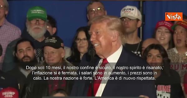 (Agenzia Vista) Usa, 11 dicembre 2025 "Dopo soli 10 mesi, il nostro confine è sicuro, il nostro spirito è risanato, l’inflazione si è fermata, i salari sono in aumento, i prezzi sono in calo. La nostra nazione è forte. L'America è di nuovo rispettata. E gli Stati Uniti sono tornati. Renderemo l’America di nuovo ricca. Renderemo l’America di nuovo sana. Renderemo l’America di nuovo forte. Renderemo di nuovo orgogliosa l’America. Renderemo di nuovo l’America sicura e la renderemo di nuovo grande”, lo dice Trump a un comizio in Pennsylvania. X Fonte: Agenzia Vista / Alexander Jakhnagiev,