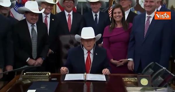 Donald Trump accoglie nello Studio Ovale la nazionale degli Stati Uniti che alle Olimpiadi invernali di Lake Placid 1980 realizzò il 'miracle on ice', il miracolo sul ghiaccio: nel torneo di hockey, gli Usa con una squadra di giocatori dei college sconfissero l'invincibile Unione Sovietica e conquistarono l'oro battendo poi la Finlandia. Per l'occasione, è stato omaggiato con un cappello texano, copia di quello indossato alla cerimonia di apertura dei giochi dalla squadra.