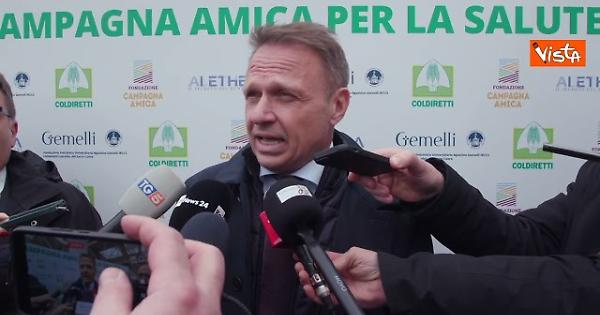 “Lo diceva Ippocrate qualche secolo fa: “Mangiare bene e fare moto permette di vivere bene e anche di vivere più a lungo”. La ragione perché siamo qui è senza dubbio per inaugurare un rapporto virtuoso con la sana alimentazione, quella frutto del lavoro dei nostri agricoltori, dei nostri pescatori, dei nostri trasformatori. Un lavoro di grande qualità che produce buon cibo all’interno di un’alimentazione corretta e che si abbina al nostro sistema sanitario. Noi dobbiamo riuscire a ridurre la spesa sanitaria, è un obiettivo che non può essere portato avanti con il taglio delle strutture sanitarie, ma con quello dei pazienti e per farlo bisogna riuscire a garantire corretta alimentazione ed educare all’alimentazione corretta. Prima questo avveniva in maniera molto importante all’interno delle famiglie ed ora accade sempre meno, anche per ragioni di tempo, e quindi bisogna recuperare attraverso luoghi di aggregazione, luoghi di contatto con questo tipo di modello e grande comunicazione. La candidatura della Cucina Italiana che ha avuto buon esito permette di implementare questa promozione del sano stile di vita anche legato al cibo e ovviamente utilizzare altri canali formativi tipo le scuole". Così Francesco Lollobrigida, ministro dell’Agricoltura e della Sovranità Alimentare a margine di “Campagna Amica per la Salute”, il progetto pilota promosso da Coldiretti e Fondazione Campagna Amica insieme alla Fondazione Policlinico Gemelli.