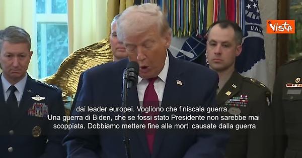 "Siamo più vicini che mai alla fine della guerra in Ucraina. Abbiamo appena avuto un icnotnro con il Presidente ucraino Volodymyr Zelensky e con una serie di leader europei. Stiamo ricevendo un enorme sostegno dai leader europei. Vogliono che finiscala guerra. Una guerra di Biden, che se fossi stato Presidente non sarebbe mai scoppiata. Dobbiamo mettere fine alle morti causate dalla guerra”. Lo ha detto il presidente degli Stati Uniti, Donald Trump, nello Studio Ovale alla Casa Bianca,