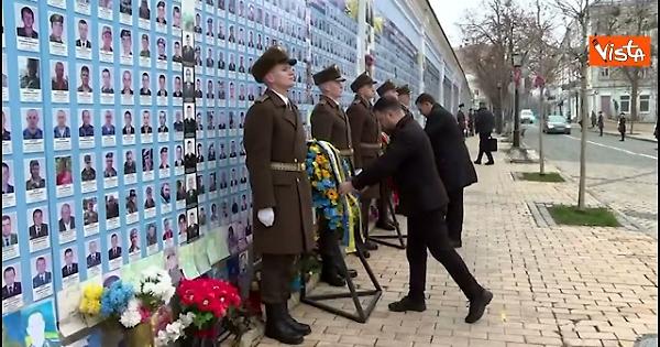 A Kiev Volodymyr Zelensky e il Primo Ministro del Portogallo Luis Montenegro hanno preso omaggio a caduti della guerra al Muro della Memoria di Kiev.
