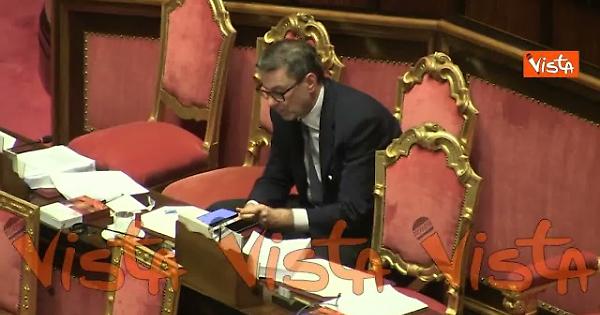 Discussione in Aula sulla manovra, il Ministro Giorgetti ascolta gli interventi dei Senatori