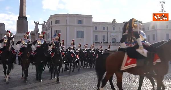 Oggi è il giorno della Festa del Tricolore. In occasione di questo evento, in piazza del Quirinale, si è tenuto il cambio della Guardia solenne del Reggimento Corazzieri e della Fanfara del IV Reggimento Carabinieri a cavallo.