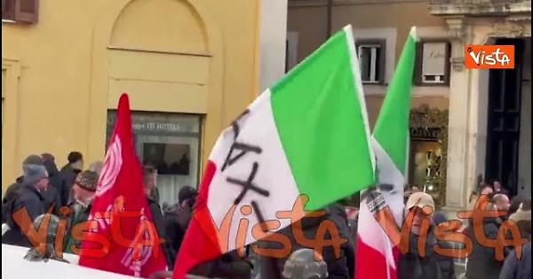 Fumogeni e bombe carta lanciate dai manifestanti nei pressi di Montecitorio, durante il corteo dei tassisti che aderiscono allo sciopero contro Uber e le piattaforme internazionali di trasporto.