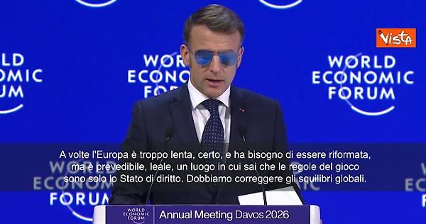 "A volte l'Europa è troppo lenta, certo, e ha bisogno di essere riformata, ma è prevedibile, leale, un luogo in cui sai che le regole del gioco sono solo lo Stato di diritto. Dobbiamo correggere gli squilibri globali. Abbiamo bisogno di più crescita e più stabilità. Preferiamo il rispetto ai bulli e preferiamo lo Stato di diritto alla brutalità. Siete i benvenuti in Europa e siete più che benvenuti in Francia", lo ha detto Macron al Forum di Davos.